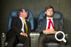 „Beck spielte den naiven, aufgeregten Gewinner einer Urlaubsreise, während Biedermann, den toughen, besserwisserischen Businesstyp gab, sichtlich von seinem Sitznachbarn genervt. Gestik und das Minenspiel der beiden sprach Bände ... Wie eng Tragik und Humor im Leben verwoben sind, zeigte sich in nachdenklichen Dialogen, die immer wieder von clownesken Einschüben unterbrochen wurden...“
